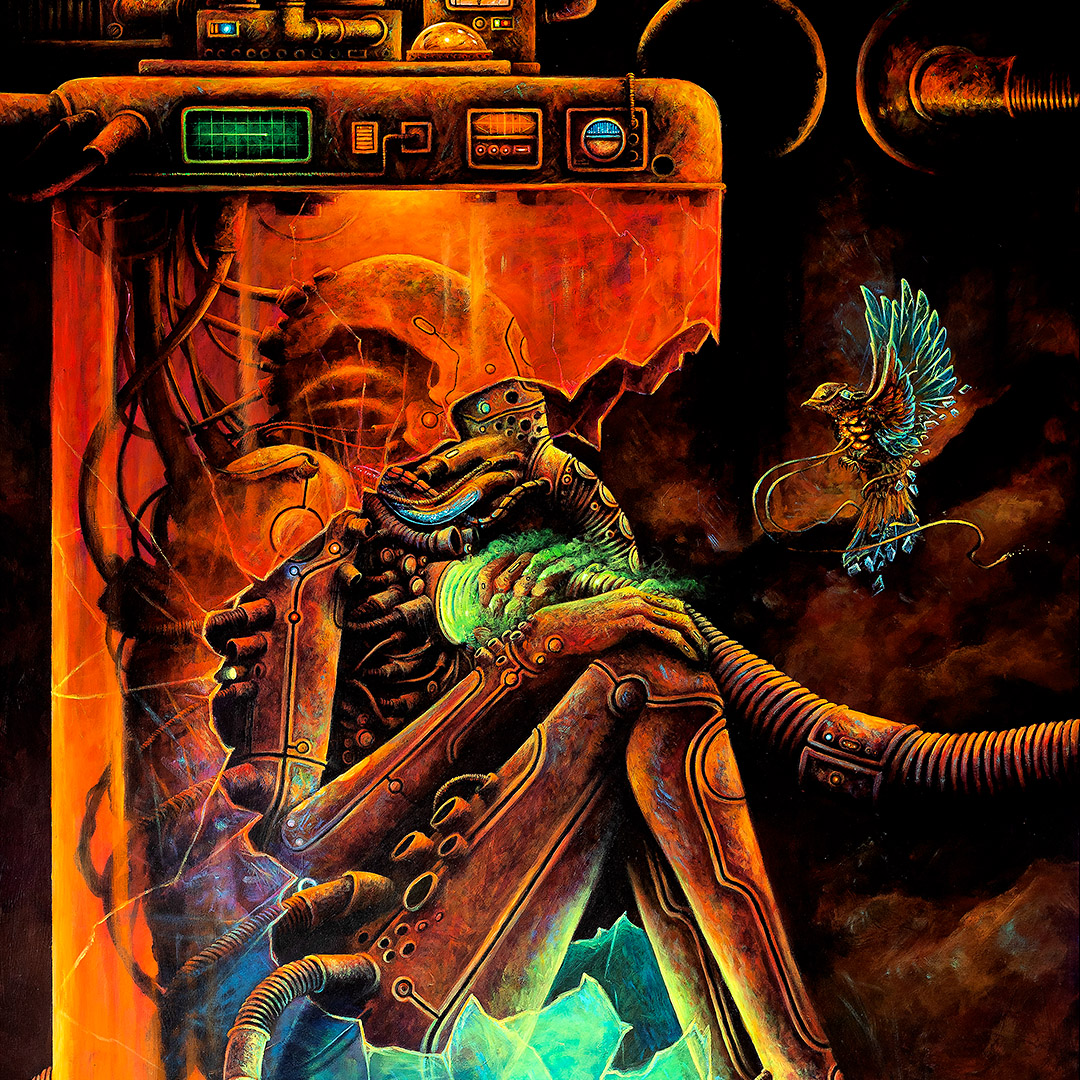 Coś się zaczyna. Ona stoi w drzwiach – jeszcze w cieniu, ale już z twarzą w słońcu. W bluzie z uszami zebry, w czerwonych okularach. Gotowa, by ruszyć dalej. Coś powiedzieć, coś pokazać całemu światu. To moment zatrzymany pomiędzy – jeszcze wewnątrz, już prawie na zewnątrz. Ile razy sami byliśmy dokładnie tam? „Tupak” to portret osoby bliskiej artyście. W całej serii Human Factor symboliczne kostiumy i rekwizyty mają znaczenie – tutaj zebra to znak stadności, przynależności, ale i siły własnego głosu.