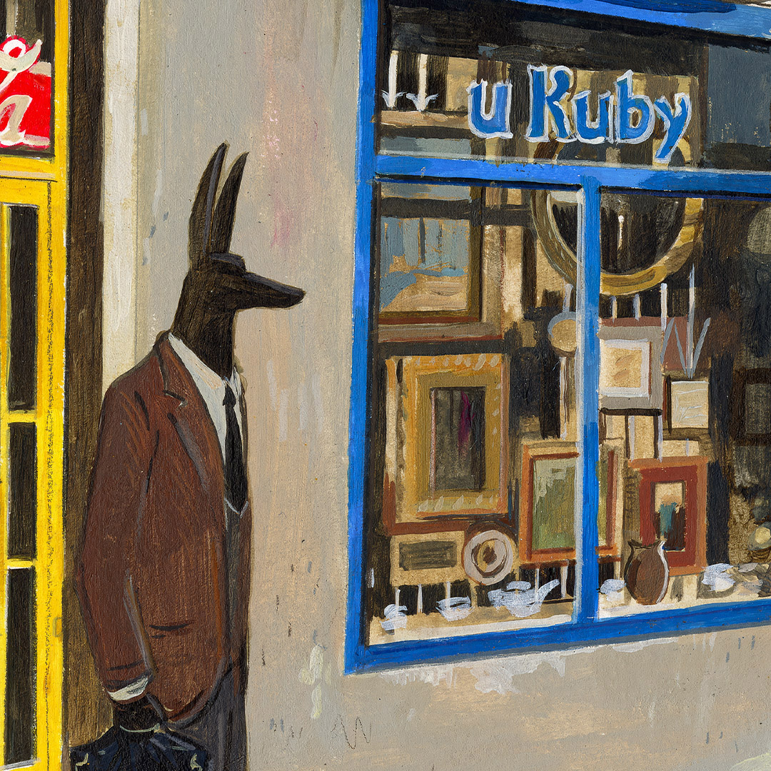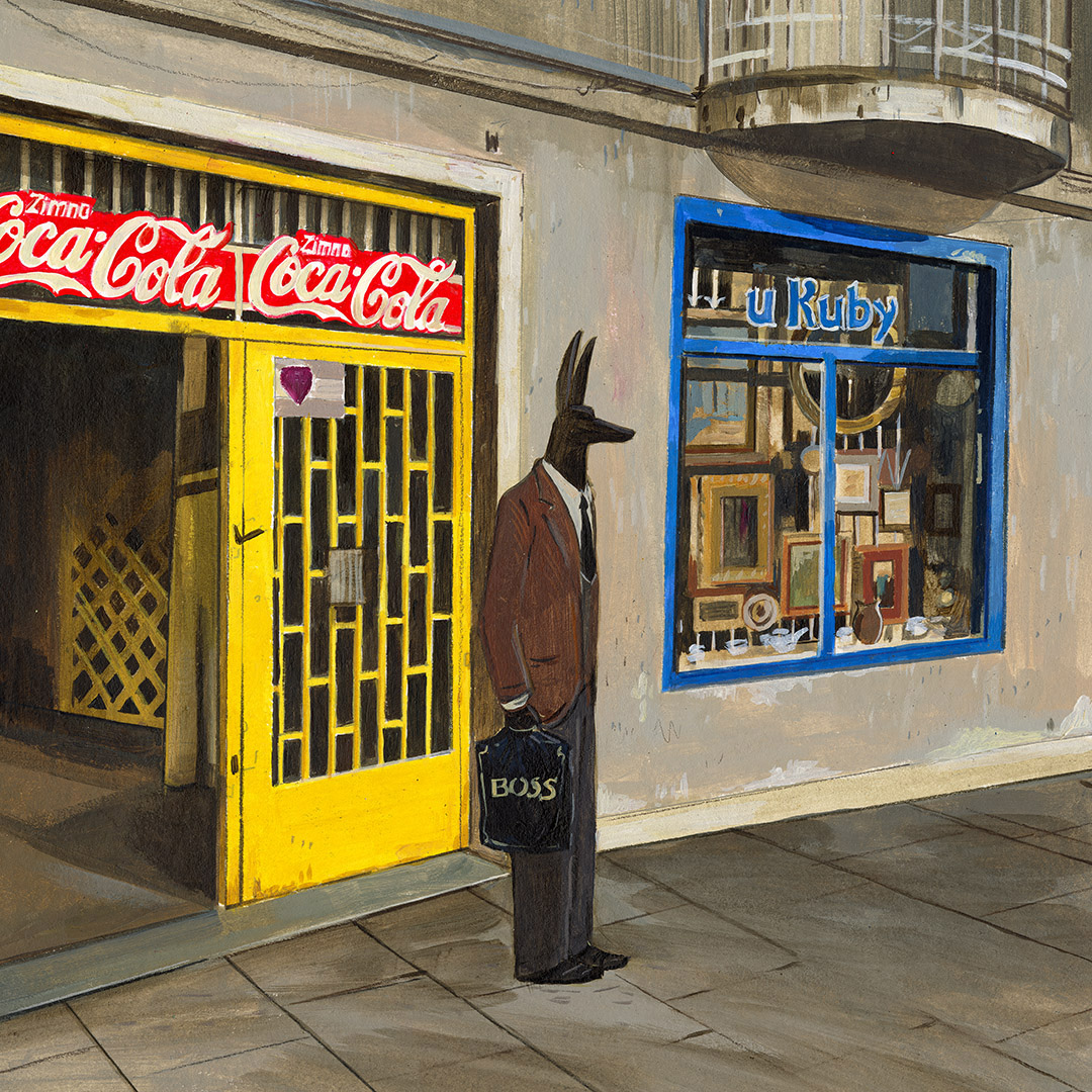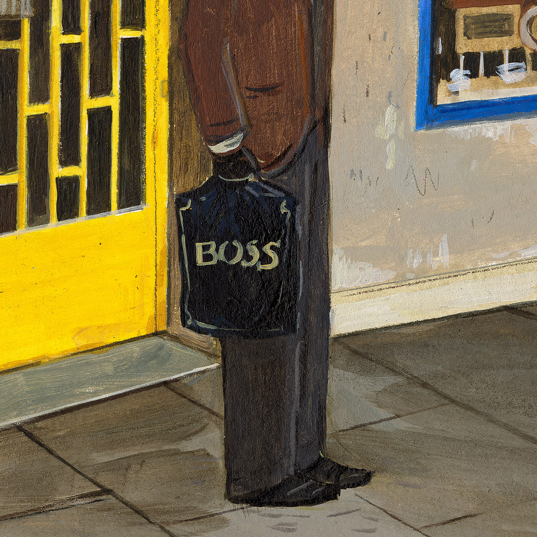 Coś się zaczyna. Ona stoi w drzwiach – jeszcze w cieniu, ale już z twarzą w słońcu. W bluzie z uszami zebry, w czerwonych okularach. Gotowa, by ruszyć dalej. Coś powiedzieć, coś pokazać całemu światu. To moment zatrzymany pomiędzy – jeszcze wewnątrz, już prawie na zewnątrz. Ile razy sami byliśmy dokładnie tam? „Tupak” to portret osoby bliskiej artyście. W całej serii Human Factor symboliczne kostiumy i rekwizyty mają znaczenie – tutaj zebra to znak stadności, przynależności, ale i siły własnego głosu.