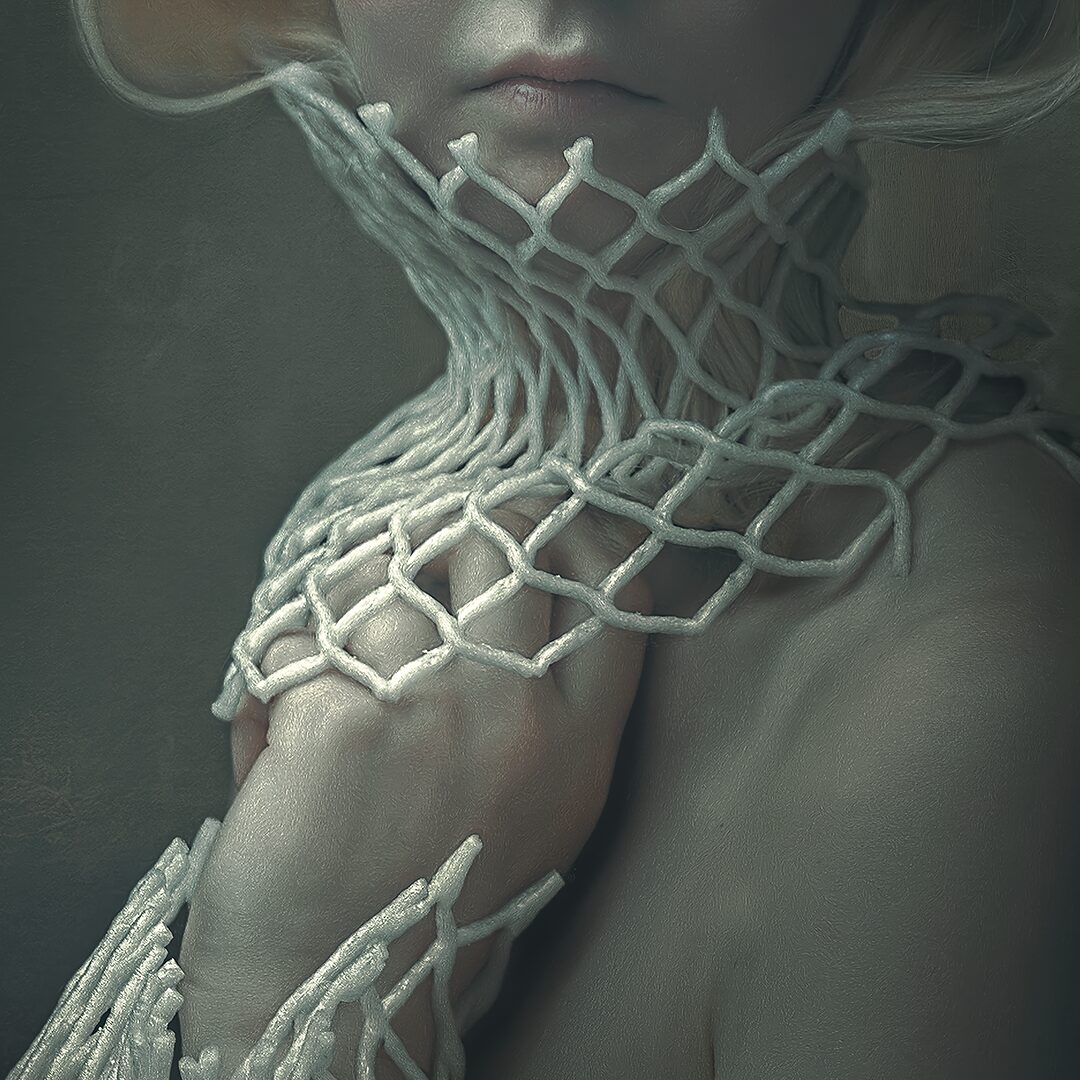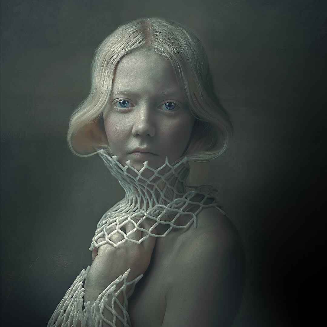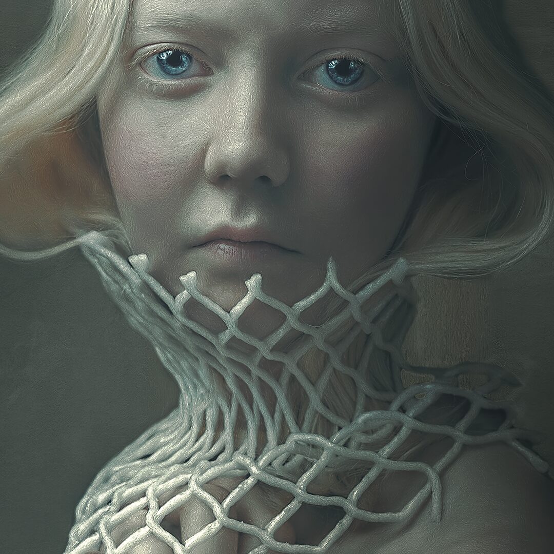 Coś się zaczyna. Ona stoi w drzwiach – jeszcze w cieniu, ale już z twarzą w słońcu. W bluzie z uszami zebry, w czerwonych okularach. Gotowa, by ruszyć dalej. Coś powiedzieć, coś pokazać całemu światu. To moment zatrzymany pomiędzy – jeszcze wewnątrz, już prawie na zewnątrz. Ile razy sami byliśmy dokładnie tam? „Tupak” to portret osoby bliskiej artyście. W całej serii Human Factor symboliczne kostiumy i rekwizyty mają znaczenie – tutaj zebra to znak stadności, przynależności, ale i siły własnego głosu.