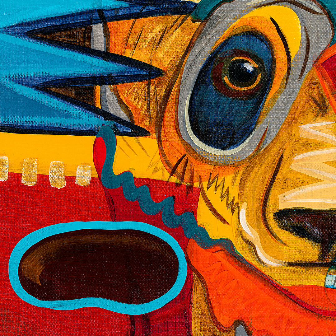 Coś się zaczyna. Ona stoi w drzwiach – jeszcze w cieniu, ale już z twarzą w słońcu. W bluzie z uszami zebry, w czerwonych okularach. Gotowa, by ruszyć dalej. Coś powiedzieć, coś pokazać całemu światu. To moment zatrzymany pomiędzy – jeszcze wewnątrz, już prawie na zewnątrz. Ile razy sami byliśmy dokładnie tam? „Tupak” to portret osoby bliskiej artyście. W całej serii Human Factor symboliczne kostiumy i rekwizyty mają znaczenie – tutaj zebra to znak stadności, przynależności, ale i siły własnego głosu.