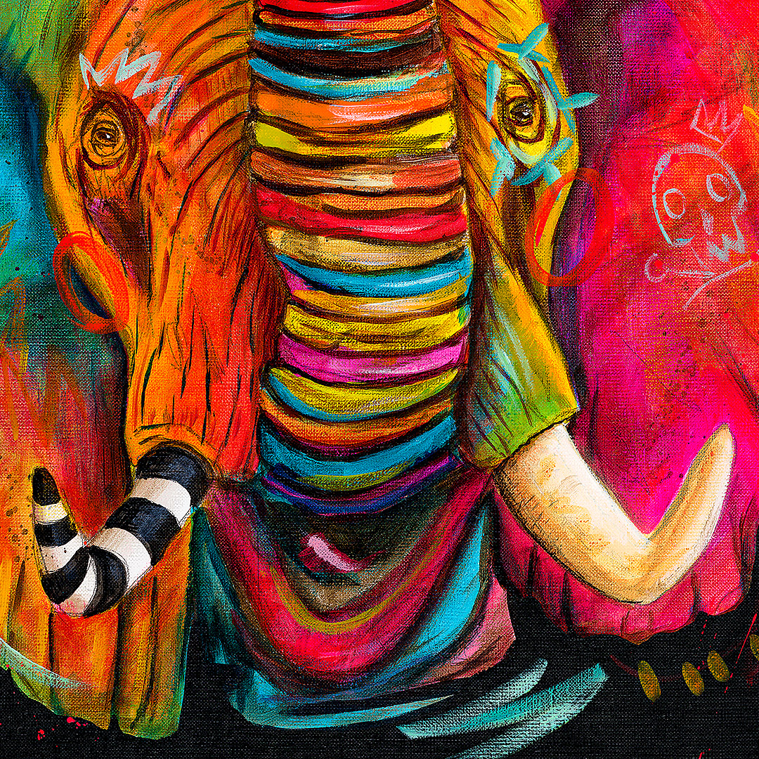 Coś się zaczyna. Ona stoi w drzwiach – jeszcze w cieniu, ale już z twarzą w słońcu. W bluzie z uszami zebry, w czerwonych okularach. Gotowa, by ruszyć dalej. Coś powiedzieć, coś pokazać całemu światu. To moment zatrzymany pomiędzy – jeszcze wewnątrz, już prawie na zewnątrz. Ile razy sami byliśmy dokładnie tam? „Tupak” to portret osoby bliskiej artyście. W całej serii Human Factor symboliczne kostiumy i rekwizyty mają znaczenie – tutaj zebra to znak stadności, przynależności, ale i siły własnego głosu.