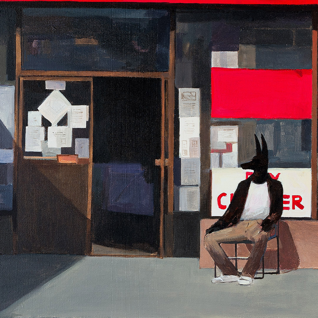 Coś się zaczyna. Ona stoi w drzwiach – jeszcze w cieniu, ale już z twarzą w słońcu. W bluzie z uszami zebry, w czerwonych okularach. Gotowa, by ruszyć dalej. Coś powiedzieć, coś pokazać całemu światu. To moment zatrzymany pomiędzy – jeszcze wewnątrz, już prawie na zewnątrz. Ile razy sami byliśmy dokładnie tam? „Tupak” to portret osoby bliskiej artyście. W całej serii Human Factor symboliczne kostiumy i rekwizyty mają znaczenie – tutaj zebra to znak stadności, przynależności, ale i siły własnego głosu.