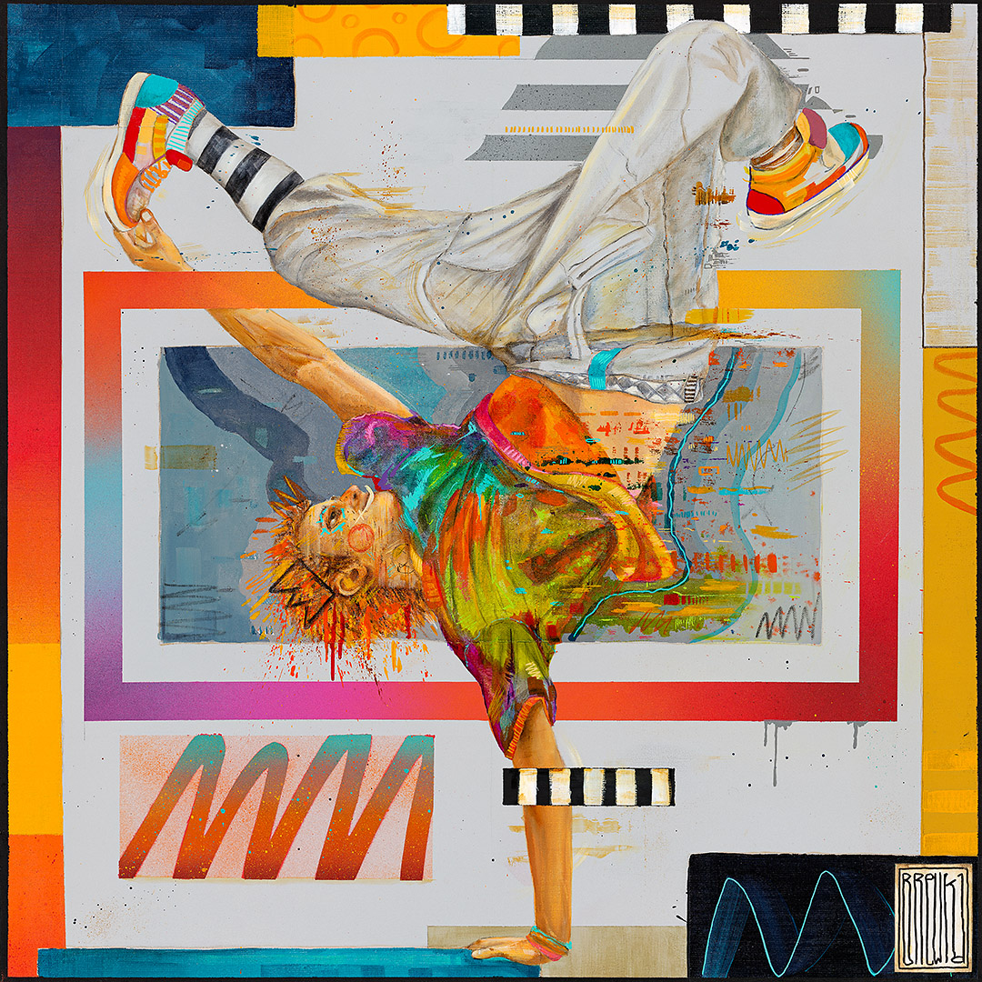 Coś się zaczyna. Ona stoi w drzwiach – jeszcze w cieniu, ale już z twarzą w słońcu. W bluzie z uszami zebry, w czerwonych okularach. Gotowa, by ruszyć dalej. Coś powiedzieć, coś pokazać całemu światu. To moment zatrzymany pomiędzy – jeszcze wewnątrz, już prawie na zewnątrz. Ile razy sami byliśmy dokładnie tam? „Tupak” to portret osoby bliskiej artyście. W całej serii Human Factor symboliczne kostiumy i rekwizyty mają znaczenie – tutaj zebra to znak stadności, przynależności, ale i siły własnego głosu.