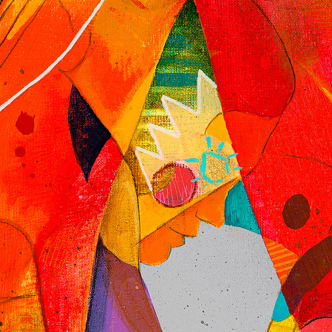 Coś się zaczyna. Ona stoi w drzwiach – jeszcze w cieniu, ale już z twarzą w słońcu. W bluzie z uszami zebry, w czerwonych okularach. Gotowa, by ruszyć dalej. Coś powiedzieć, coś pokazać całemu światu. To moment zatrzymany pomiędzy – jeszcze wewnątrz, już prawie na zewnątrz. Ile razy sami byliśmy dokładnie tam? „Tupak” to portret osoby bliskiej artyście. W całej serii Human Factor symboliczne kostiumy i rekwizyty mają znaczenie – tutaj zebra to znak stadności, przynależności, ale i siły własnego głosu.