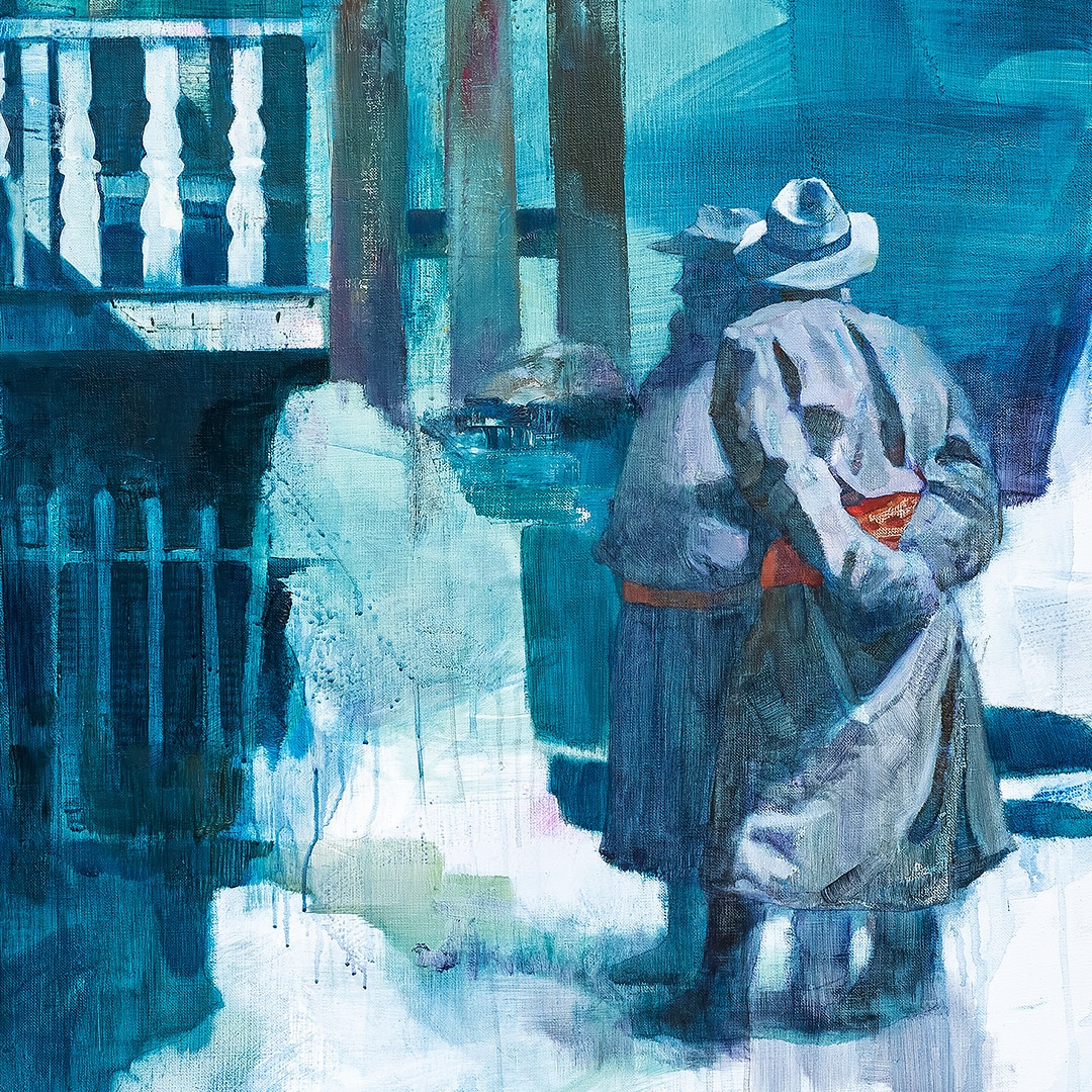 Coś się zaczyna. Ona stoi w drzwiach – jeszcze w cieniu, ale już z twarzą w słońcu. W bluzie z uszami zebry, w czerwonych okularach. Gotowa, by ruszyć dalej. Coś powiedzieć, coś pokazać całemu światu. To moment zatrzymany pomiędzy – jeszcze wewnątrz, już prawie na zewnątrz. Ile razy sami byliśmy dokładnie tam? „Tupak” to portret osoby bliskiej artyście. W całej serii Human Factor symboliczne kostiumy i rekwizyty mają znaczenie – tutaj zebra to znak stadności, przynależności, ale i siły własnego głosu.