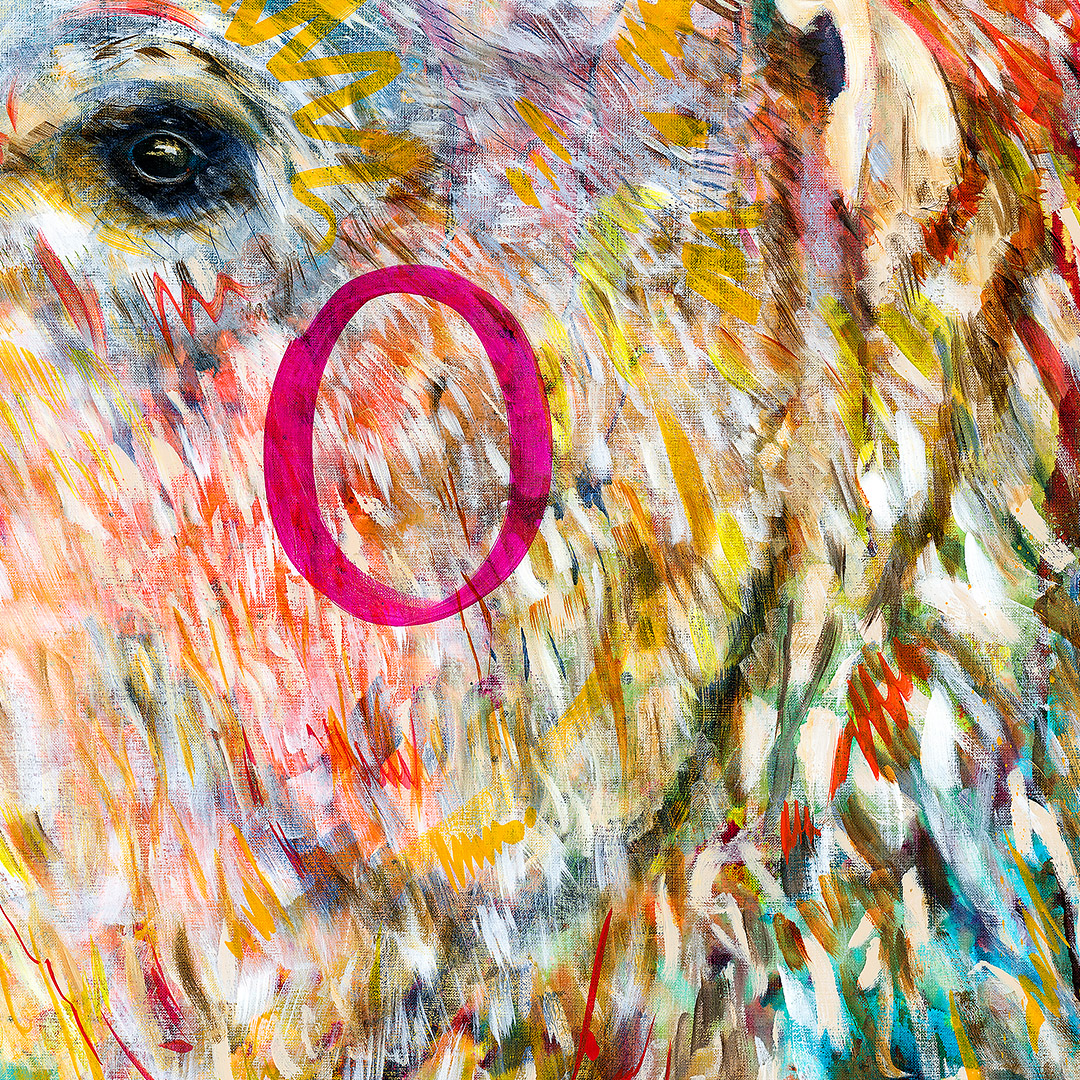 Coś się zaczyna. Ona stoi w drzwiach – jeszcze w cieniu, ale już z twarzą w słońcu. W bluzie z uszami zebry, w czerwonych okularach. Gotowa, by ruszyć dalej. Coś powiedzieć, coś pokazać całemu światu. To moment zatrzymany pomiędzy – jeszcze wewnątrz, już prawie na zewnątrz. Ile razy sami byliśmy dokładnie tam? „Tupak” to portret osoby bliskiej artyście. W całej serii Human Factor symboliczne kostiumy i rekwizyty mają znaczenie – tutaj zebra to znak stadności, przynależności, ale i siły własnego głosu.