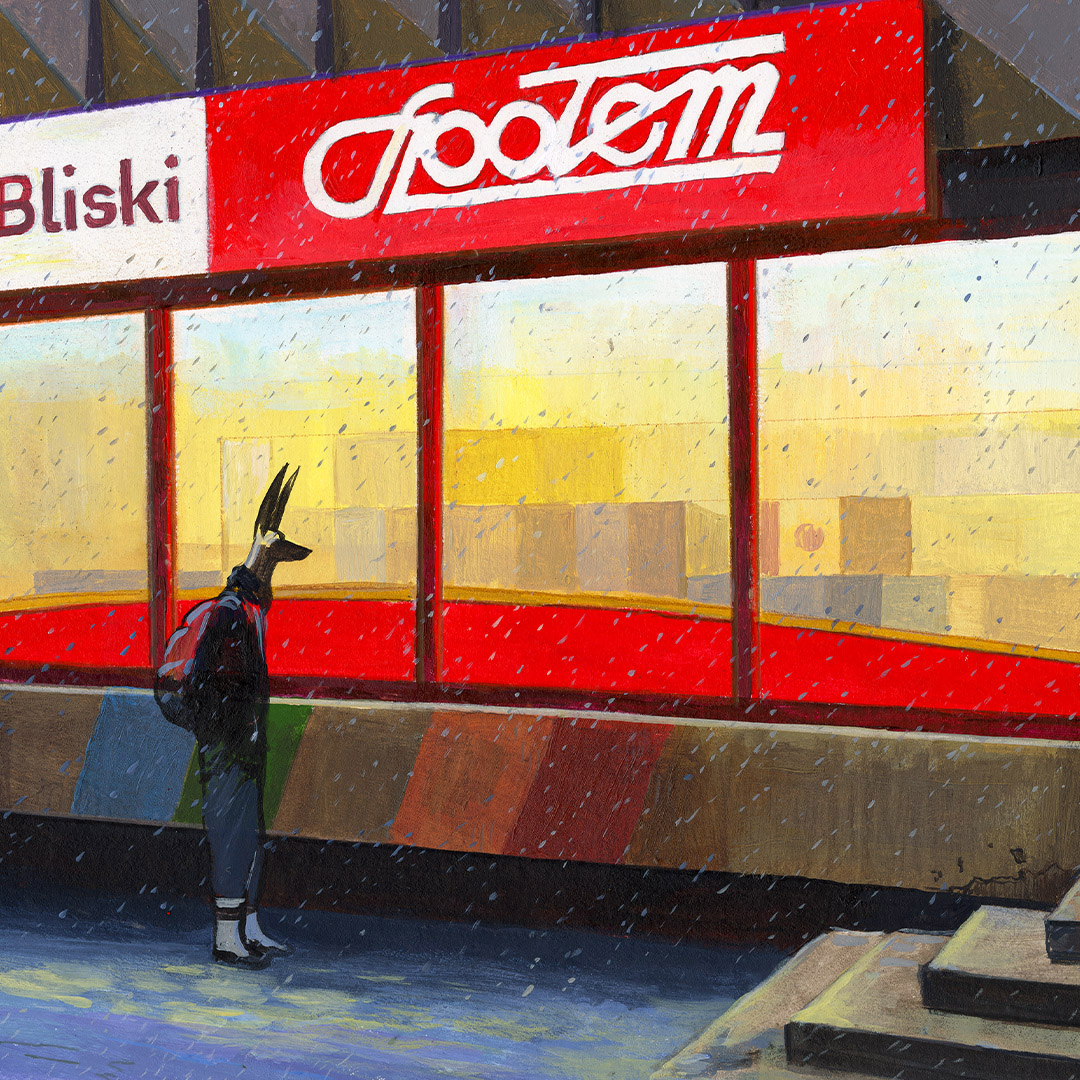 Coś się zaczyna. Ona stoi w drzwiach – jeszcze w cieniu, ale już z twarzą w słońcu. W bluzie z uszami zebry, w czerwonych okularach. Gotowa, by ruszyć dalej. Coś powiedzieć, coś pokazać całemu światu. To moment zatrzymany pomiędzy – jeszcze wewnątrz, już prawie na zewnątrz. Ile razy sami byliśmy dokładnie tam? „Tupak” to portret osoby bliskiej artyście. W całej serii Human Factor symboliczne kostiumy i rekwizyty mają znaczenie – tutaj zebra to znak stadności, przynależności, ale i siły własnego głosu.