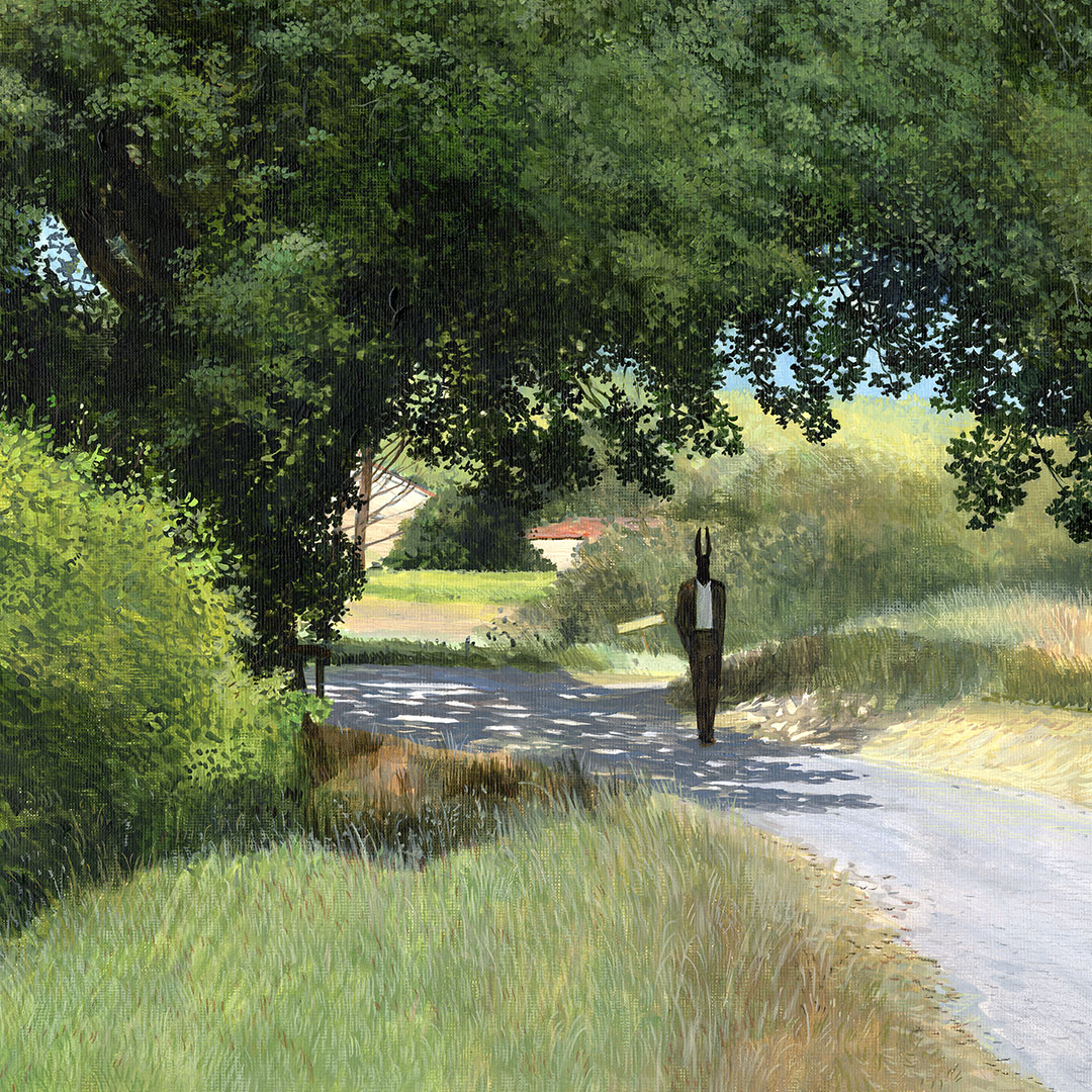 Coś się zaczyna. Ona stoi w drzwiach – jeszcze w cieniu, ale już z twarzą w słońcu. W bluzie z uszami zebry, w czerwonych okularach. Gotowa, by ruszyć dalej. Coś powiedzieć, coś pokazać całemu światu. To moment zatrzymany pomiędzy – jeszcze wewnątrz, już prawie na zewnątrz. Ile razy sami byliśmy dokładnie tam? „Tupak” to portret osoby bliskiej artyście. W całej serii Human Factor symboliczne kostiumy i rekwizyty mają znaczenie – tutaj zebra to znak stadności, przynależności, ale i siły własnego głosu.