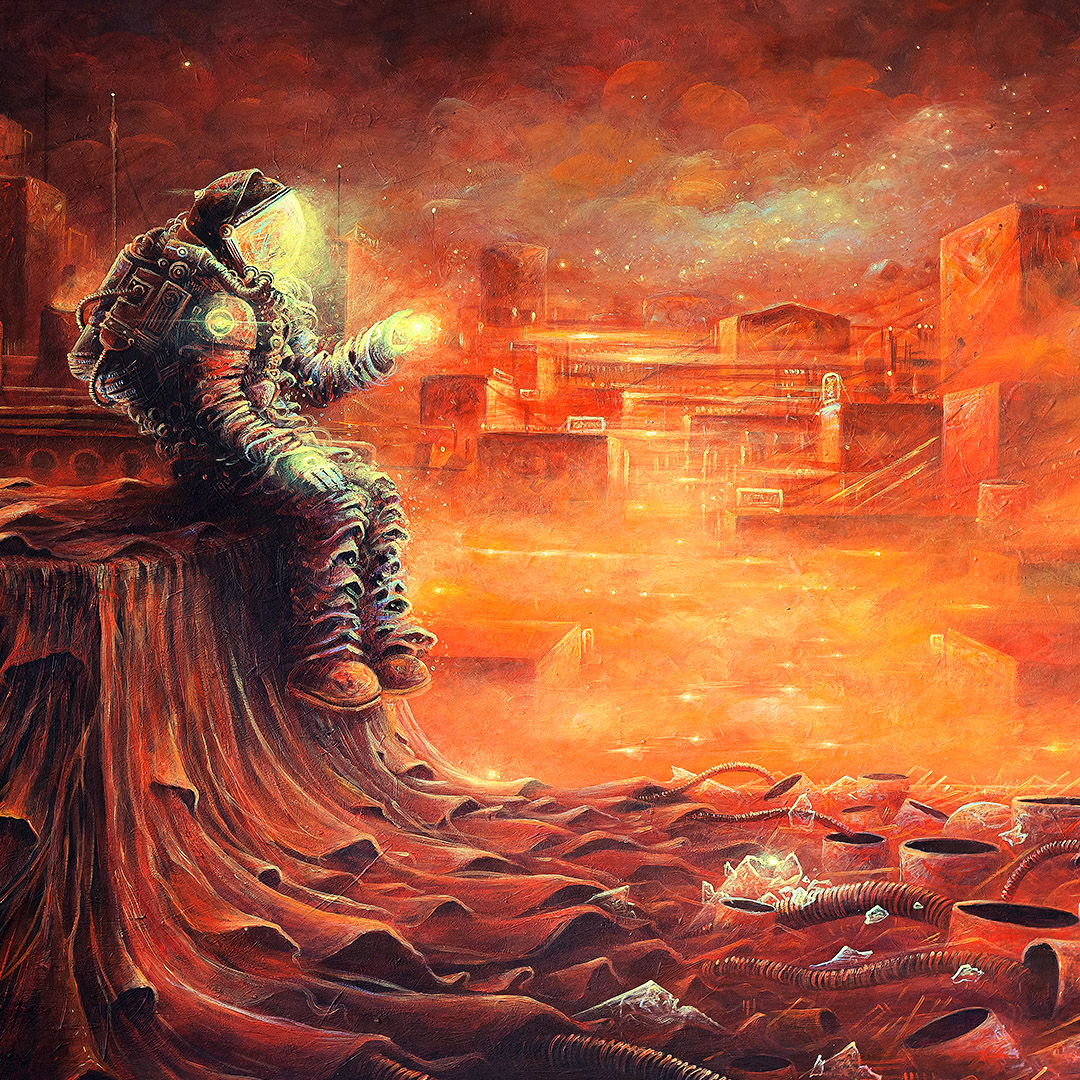 Coś się zaczyna. Ona stoi w drzwiach – jeszcze w cieniu, ale już z twarzą w słońcu. W bluzie z uszami zebry, w czerwonych okularach. Gotowa, by ruszyć dalej. Coś powiedzieć, coś pokazać całemu światu. To moment zatrzymany pomiędzy – jeszcze wewnątrz, już prawie na zewnątrz. Ile razy sami byliśmy dokładnie tam? „Tupak” to portret osoby bliskiej artyście. W całej serii Human Factor symboliczne kostiumy i rekwizyty mają znaczenie – tutaj zebra to znak stadności, przynależności, ale i siły własnego głosu.