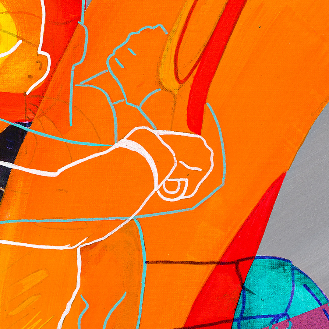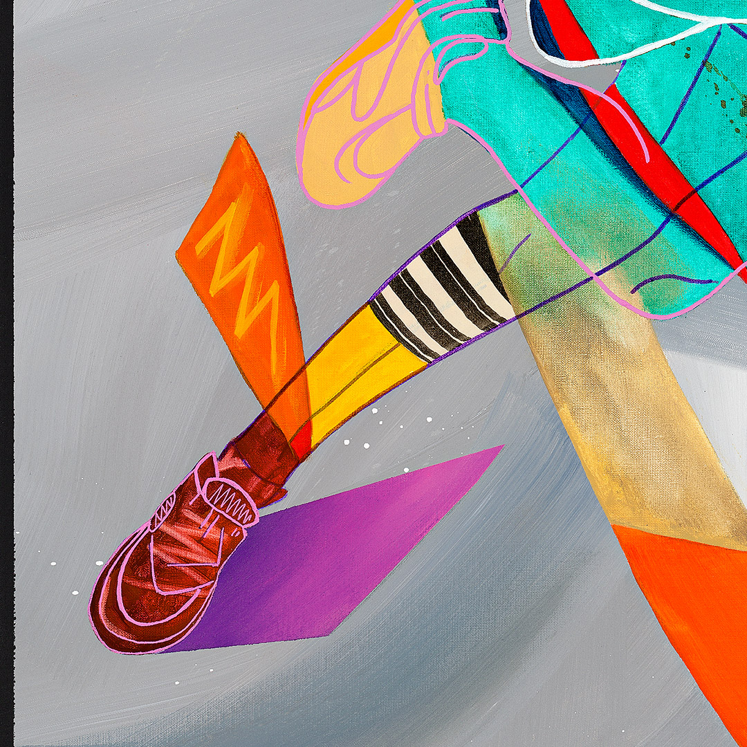 Coś się zaczyna. Ona stoi w drzwiach – jeszcze w cieniu, ale już z twarzą w słońcu. W bluzie z uszami zebry, w czerwonych okularach. Gotowa, by ruszyć dalej. Coś powiedzieć, coś pokazać całemu światu. To moment zatrzymany pomiędzy – jeszcze wewnątrz, już prawie na zewnątrz. Ile razy sami byliśmy dokładnie tam? „Tupak” to portret osoby bliskiej artyście. W całej serii Human Factor symboliczne kostiumy i rekwizyty mają znaczenie – tutaj zebra to znak stadności, przynależności, ale i siły własnego głosu.
